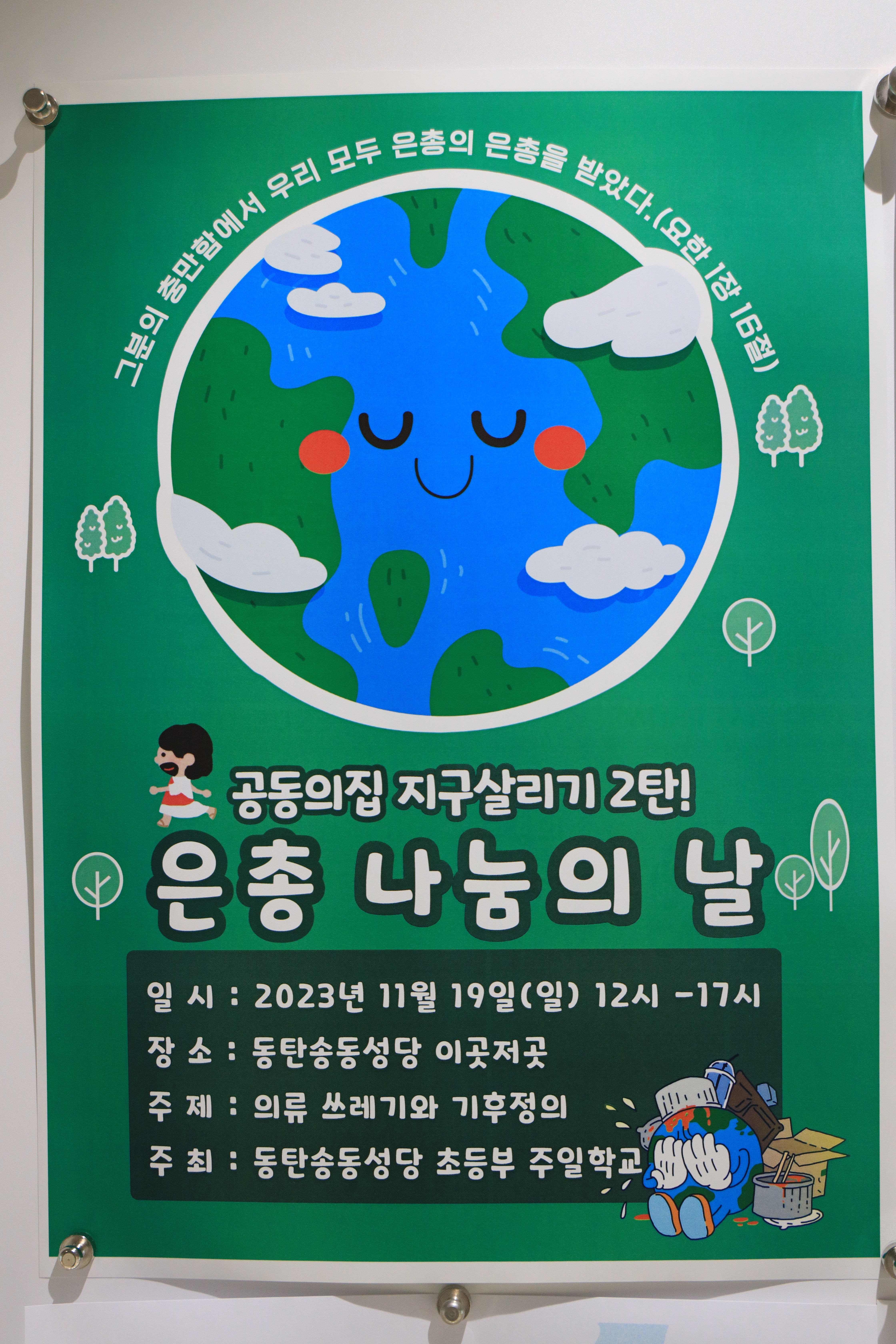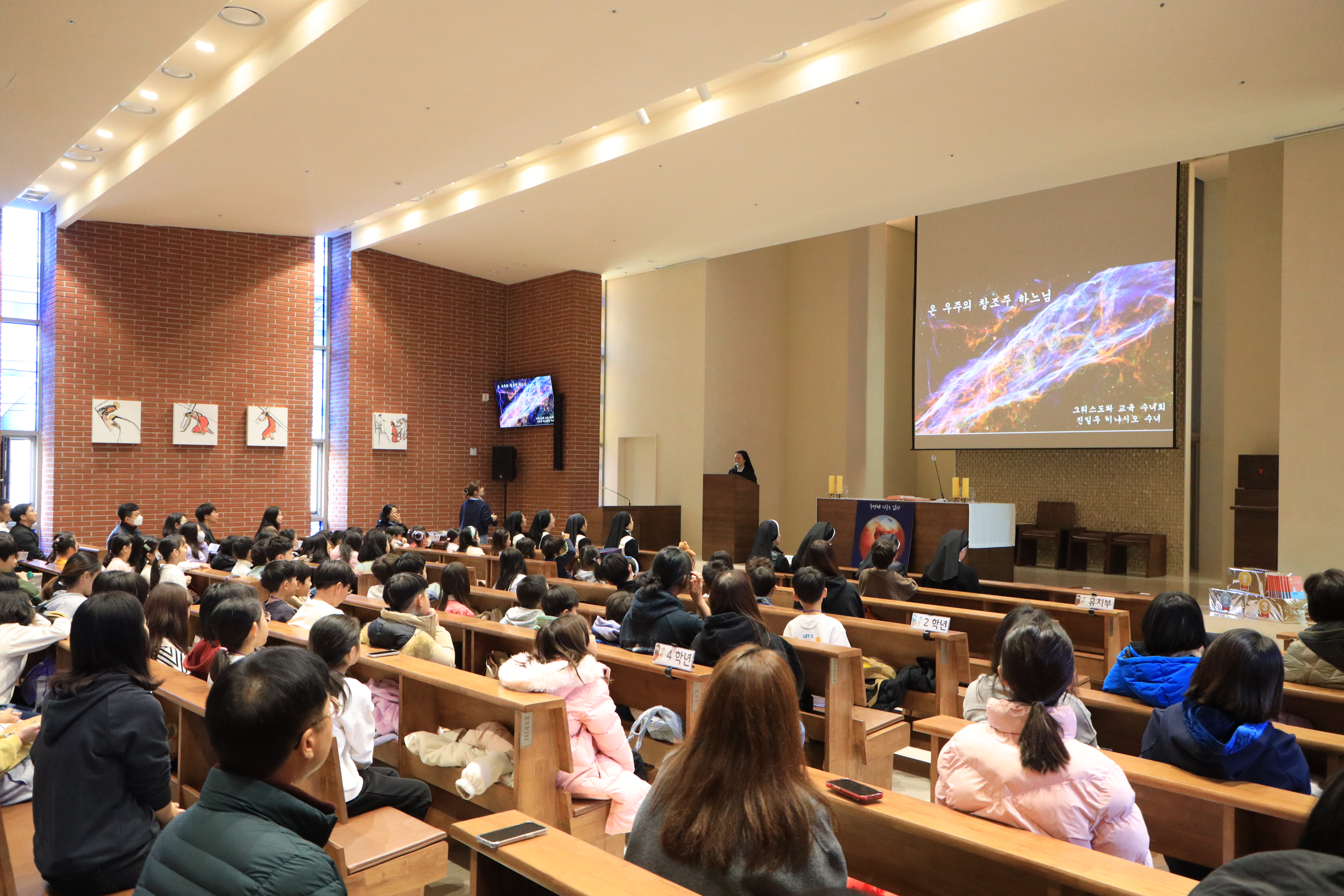 | 동탄송동본당 초등부, ‘공동의 집 지구 살리기 은총 나눔의 날’ 행사 에코 3개년 계획 일환···‘우리는 지구 지킴이 영웅’ 제1대리구 동탄송동본당(주임 이상훈 바오로 신부)은 11월 19일 ‘의류 쓰레기와 기후 정의’를 주제로 공동의 집 지구 살리기 은총 나눔의 날 행사를 열었다. 이 행사는 본당의 에코 3개년(2023~2025) 프로젝트 중 지난 부활 때에 이어 두 번째다. 본당 초등부 주일학교(교감 김경화 헤드빅)가 주관한 지구 살리기 은총 나눔 잔치는 오전 11시부터 5시간 동안 성당 지하2층 주차장~지상2층 성전에서 진행됐다. 이날 150여 명의 초등부 어린이들이 은총 나눔 잔치에 참여했다. 이들은 재활용 전시, 천연비누 만들기, 탄소 발자국 NO!·생태 발자국 YES!, 양말목 십자가 만들기, 추억의 옷 기부, 탄소 중립 충전소, 우주 밟기, 손바닥 발바닥 찍기, 탈리타쿰 등 곳곳의 부스를 돌며 생태 환경 체험을 통해 지구 살리기 캠페인에 동참했다. 소정의 미션을 수행한 어린이들은 자부회 회원들이 환호하며 밀어주는 ‘우리 영웅’ 수레를 타고 성당 주위를 도는 호사를 누리기도 했다. 이날 점심 때 어린이들은 개별 도시락과 텀블러를 준비하는 등 지구를 살리는 작은 실천을 했다. 그리스도의 교육 수녀회, 인보 성체 수도회, 천주 섭리 수녀회 등 3개 수도회도 참여해 ‘온 우주의 창조주 하느님’ 특강에 이어 우주 걷기와 천연비누 만들기 등 생태체험학교를 운영, 공동의 집 지구 살리기의 중요성을 어린이들이 깨닫도록 도왔다. 지구 살리기에 참여해 갖가지 미션을 수행한 어린이들은 파견미사 중 ‘정화된 맑은 지구 봉헌식’을 거행했다. 또 ‘지구 살리기’ 오행시에 대한 시상도 있었다. 본당 초등부 주일학교 김경화 교감은 “오늘 ‘지구 살리기’ 캠페인을 통해 어린이들이 각 가정에 이를 확산시킬 것을 기대한다”면서 “이에는 주님 말씀에 따르는 기도가 그 밑바탕을 이뤄야 한다”고 강조했다. 주임 이상훈 신부는 “‘지구 살리기’에 앞장서는 어린이 여러분은 ‘지구 지킴이 영웅’”이라며 “미래 세대도 살아갈 하나뿐인 공동의 집 지구를 살리는데 최선을 다하자”고 당부했다. 본당은 초등부 4~5학년을 ‘생태반’으로 편성하고 하느님 말씀과 접목해 ‘생태 수업’으로 교리교육을 진행하고 있다. ‘지구의 날’인 지난 4월 22일 초등부 어린이들은 소등 시간 10분 동안 기도를 바치며 생태적 회개와 실천을 다짐하기도 했다. 본당은 ‘생태’ 부문을 2024년도 복음화 계획에 적극 반영할 예정이다. 성기화 명예기자 |