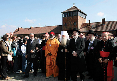 ▲ 폴란드 크라쿠프에서 열린 회의에 참석한 전 세계 종교 지도자들이 아우슈비츠 수용소를 방문하고 있다.