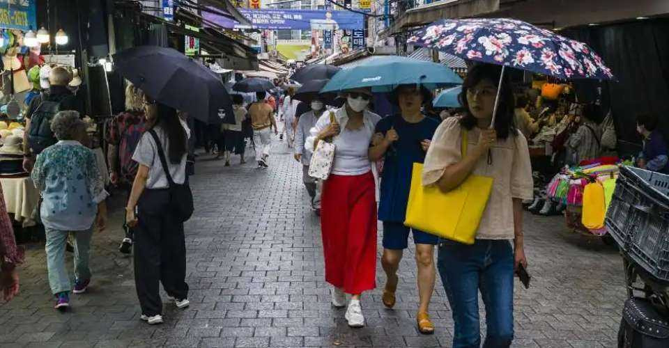 Women walk past street stalls at Namdaemun Market in Seoul, South Korea, on June 20, 2023. (Photo: AFP)