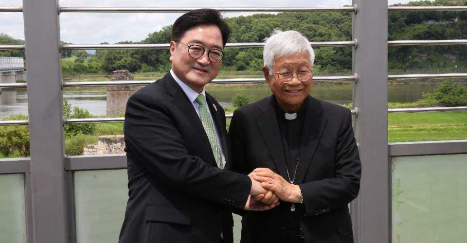 Cardinal Lazzaro You Heung-sik, the prefect of the Vatican’s Dicastery for the Clergy, and National Assembly Speaker Woo Won-shik visited Imjingak Pyeonghwa Nuri Park in the Demilitarized Zone (DMZ), a heavily fortified, four-kilometer-wide buffer zone straddling South and North Korea, on July 23.
