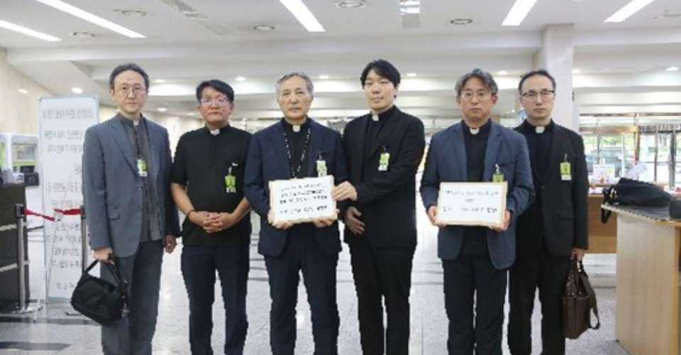 Bishop Pius Moon Chang-woo, chair of the Korean bishops’ Committee on Family and Life, handed a protest note to Park Joo-min, chair of the National Assembly Health and Welfare Committee, on Aug. 26.