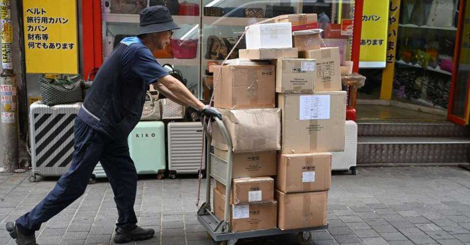 A delivery worker pushes a trolley at the Myeongdong shopping district in Seoul on July 24. (AFP)