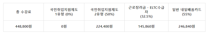 훈련기간 중 단위기간 출석률 80%이상이면서 아래 요건 중 하나를 만족하는 경우, 월 최대 11만 6천원의 훈련장려금을 지급합니다.