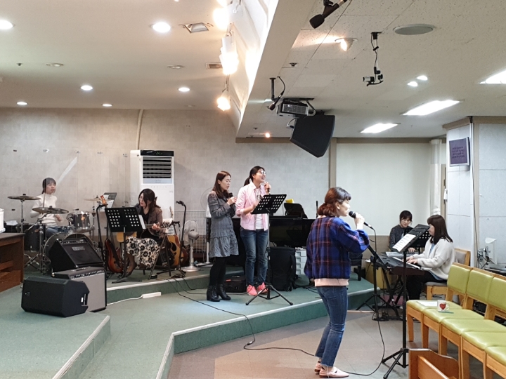 고경림집사님 인도, 김새롬집사님 키보드, 김신혜집사님 신디싸이저, 이광숙집사님 기타,