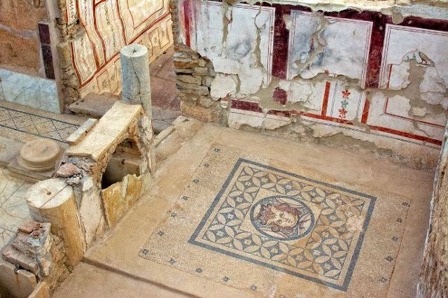 테라스 하우스 거실바닥의 모자이크 (터키, 에페소스): (왼쪽) 디오뉘소스, (오른쪽) 메두사