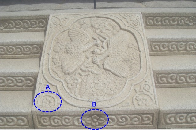 저는 우리나라 전통문양에 무쟈게 관심이 많습니다. ^^ 지난 일요일(11/20) 경희궁 답사 때 관람했던 숭정전입니다. 왕궁의 정전 앞 계단에는 이렇게 한가운데 봉황문양이 있고 네 귀퉁이랑 앞면에 꽃문양이 있습니다. 숭정전 뒤 건물, 임금의 집무실인 자정전으로 들어가는 자정문 앞 돌계단에도 봉황문양 주위에 꽃문양이 있습니다. 이 꽃은 무슨 꽃을 형상화한 것일까요? 조용진 교수의 명저, "동양화 읽는 법"에 이에 대한 설명이 있어 소개 드립니다. 전각 앞 계단이나 다리 난간에 새겨진 감꼭지 무늬 (枾蒂紋)도 바탕이 튼튼하다는 뜻의 시반(枾盤)에서 온 것이다. <시경>에 "나무 중에서 가장 뿌리가 견고한 것은 감나무다 (木中根固者 最爲枾)"라는 구절이 있다. 임금은 매미의 오덕 (五德: 文, 淸, 廉, 儉, 信)을 항상 염두에 두고 (즉, 매미날개를 형상화한 익선관을 쓰고), 나라가 튼튼히 보전되기를 바라면서 (즉, 감꼭지를 바라보면서) 이 계단을 올랐을 것이다. 그렇다. 이 계단에 새겨진 봉황 문양 주위를 장식한 꽃 문양은 다름아닌 나무 가운데 뿌리가 가장 튼튼하다는 감나무를 상징하는 감꼭지 문양일 것으로 판단된다. 그런데 마침 집에 커다란 감이 몇개 있어서 실제 감꼭지가 어떻게 생겼는지 살펴봤다. 놀랍게도 감꼭지는 잎사귀가 4장이다. 조선왕궁의 계단에 새겨진 꽃문양이 감꼭지를 형상화 한 것이라면 꽃받침이 4장이어야 하는데... 저 위의 사진을 보면 꽃받침이 5장이다. 무엇보다 생김새가 다르다. 이 감꼭지는 원래 꽃받침이다. 그래서 감꽃이 어떻게 생겼는지 살펴봤다. 감꽃은 꽃잎도 4장, 꽃받침도 4장이다. 나는 왕궁의 전각 앞 계단에 있는 봉황 문양 주위를 둘러 싼 꽃문양이 감꼭지라는 조용진 교수의 주장에 동의하는 바이다. 용비어천가에 나오는 "뿌리깊은 나무는 바람에 아니 움직일세"를 상징하는 문양이라고 생각된다. 그런데 경희궁 전각 앞 계단의 화강암에 새겨놓은 감꼭지 문양은 꽃받침이 4장이 아닌 5장이라서 감꼭지 문양이라는 주장에 확신이 서질 않는다. 조선시대 장인이 감꼭지 생김새를 착각한 것일까? 그래서 경복궁 근정전 앞 화강암 계단에 새겨놓은 봉황 주위를 장식한 꽃 문양을 살펴봤다. 아래 사진처럼 두 종류의 꽃 문양이 관찰되었다. "A" 문양은 앞서 보았던 경희궁 숭정전 문양과 비슷한데, 여기선 꽃잎 (또는 꽃받침) 개수가 6장이다. "B" 문양은 바로 감꼭지 문양이다. 조선시대에 한양도성을 건설할 때, 도성 출입문의 명칭을 유교의 5개 덕목인 인, 의, 예, 지, 신 (仁, 義, 禮, 智, 信)에서 따왔고, 임금이나 신하가 머리에 쓴 모자 (익선관)에 매미날개를 단 것은 매미의 오덕(文, 淸, 廉, 儉, 信)을 본받자는 뜻이었듯이, 옛 선인들의 조형물에는 반드시 어떤 뜻이 담겨져 있었다고 생각된다. 그래서 왕실 전각의 계단에 새겨놓은 꽃 문양은 바로 <시경>에 "나무 중에서 가장 뿌리가 견고한 것은 감나무다 (木中根固者 最爲枾)"라는 구절을 형상화했다고 생각되는데, 위 사진에서 "B" 문양은 확실히 감꼭지 문양으로 판단되지만, "A" 문양은 아무래도 감꼭지 문양은 아닌 것 같다는 생각이 든다. 이 문양의 정체를 밝히기 위해서는 좀 더 연구가 필요할 것 같다. ^^ |