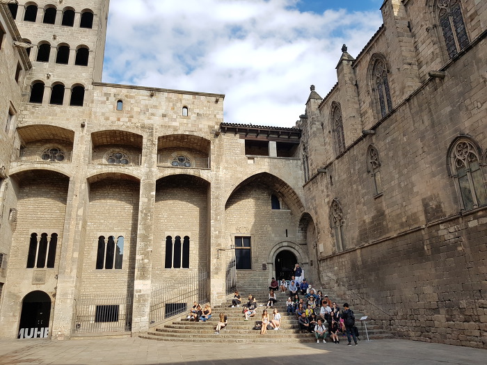 [사진 1] 바르셀로나 아라곤 왕궁과 광장 (고딕투어(?)를 함께 했던 투어일행 모습이다.)
