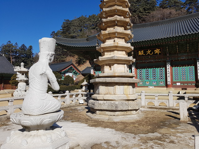 지난 설연휴 마지막날(2/17일) 오대산 월정사랑 동해안 바다열차 투어를 댕겨왔습니다. 겨울철 시퍼런 동해바다를 보면서 기를 받아오고 싶은 생각도 들었지만, 월정사에 들러 8각9층석탑과 석조인물좌상을 다시 한번 자세히 살펴보고픈 마음이 동했기에 투어를 신청했습니다.