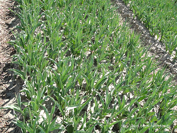 고운 사질토의 튤립밭. 튤립꽃은 피자마자 위 사진과 같이 꽃을 기계로 날려버리고(그래야 땅밑의 튤립 구근이 커지니까...^^) 열심히 땅속의 상품인 튤립 구근을 키우고 있었습니다.