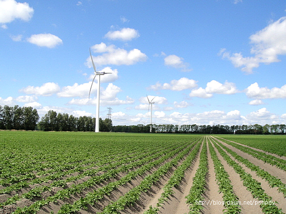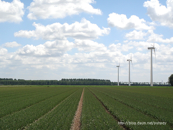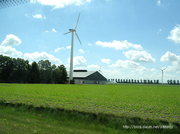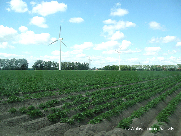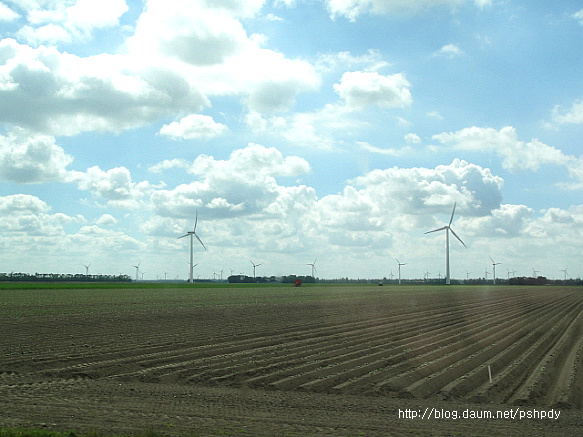어릴적 TV만화에서 보던 풍차는 없었지만, 이제는 가는 곳곳마다 현대식 풍력발전기가 어림잡아 수십대씩 바람을 받아 빙빙 도는 모습이 참 이국적으로 보였고, 끝없이 펼쳐진 넓은 들이 이 나라가 농업 강국이라는 인상을 심어주기에 충분했습니다.