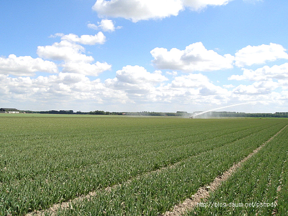 스프링쿨러는 고정식이 아니라, 이랑을 따라 움직여가며 물을 주니, 이 넓은 농장에, 사람이 필요하지가 않았습니다. 노지농업의 전 자동화....참 부러운 현실이었습니다.