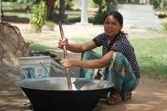 To extract the sap, climbers ascend the palm tree and slash the flower buds, placing buckets under the buds to collect the sap which wells out. Then, the sap can be boiled down to concentrate it and evaporate the moisture. Depending on how heavily the palm sugar is processed, it may be sold in the form of a paste, or it may be dried out and molded into blocks or cones to make it easier to handle.