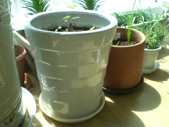 아래 흰색 도자기 화분은 지난 3월엔가 4월초엔가 구입했던건데...