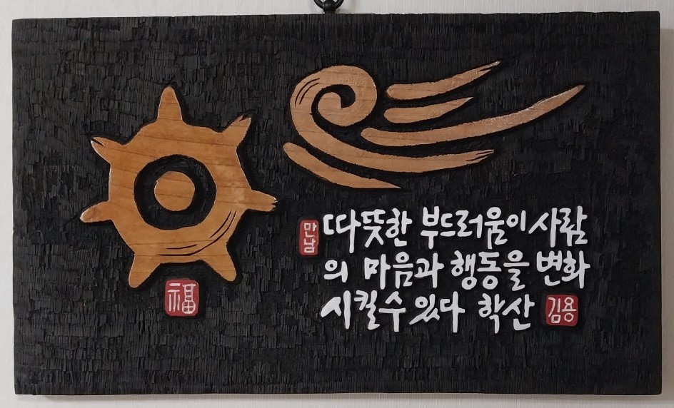 본 작품은 이숍우화를 소재로 하여 제작하였습니다. 작품 속의 앞의 도형은 해이며, 뒤의 도형은 바람입니다.