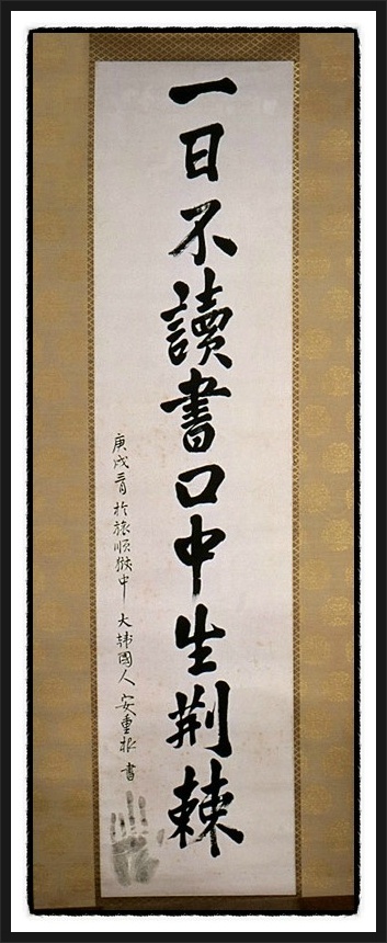 105년전 나라잃은 억울한 세상이였지요, 절대 잊어서는 안될것 입니다 2월14일 발렌타인 데이를 더 생각하게 되는것이 안타 깝네요 올해는 광복 70주년의 해 안중근의사유묵 <-> 일일부독서구중생형극 安重根義士遺墨 <-> 一日不讀書口中生荊棘 | ||||||||||||||||||||