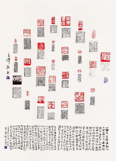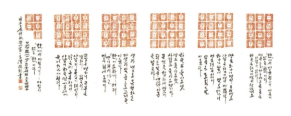 선생은 중국의 법첩을 많이 섭렵했지만, 글씨의 기저에는 한국의 토속적인 체취가 너무나도 깊이 베어 있다. 선생은 일찍부터 한국서예사 연구에 관심을 가졌다. 개인전 도록 후면에 실린 창암 이삼만에 대한 연구는 그것을 증명한다. 창암 이삼만은 그 어느 서예가보다도 한국적인 정서를 글씨에 담아낸 서예가로 이름이 높다.