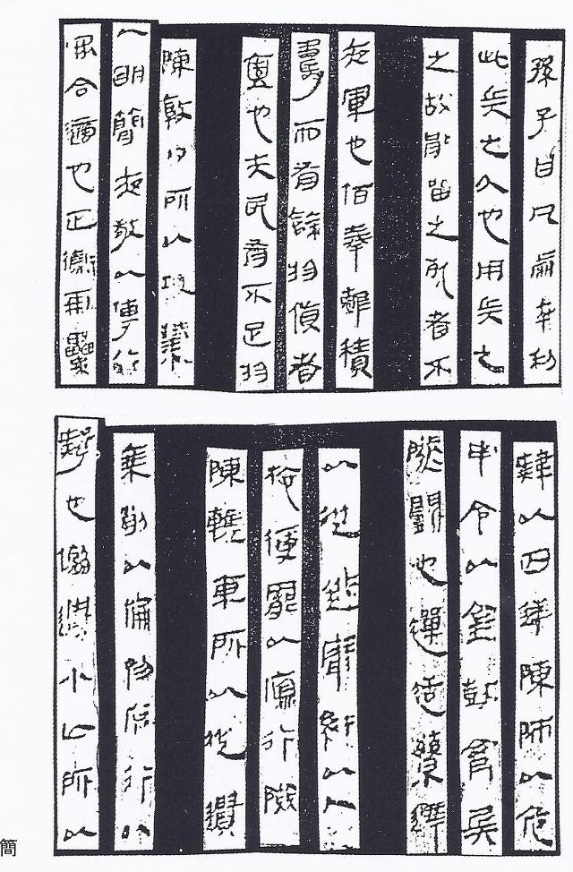 1950년 대에는 여러 곳에서 죽간을 발굴하였다. 대부분이 전국시대 죽간이었다. 글자체도 전국시대의 글자체(금문)와 닮았다. 특히 초나라 지역에서 많이 발굴한 탓인지 초나라 글자체와 닮은 것이 많았다.