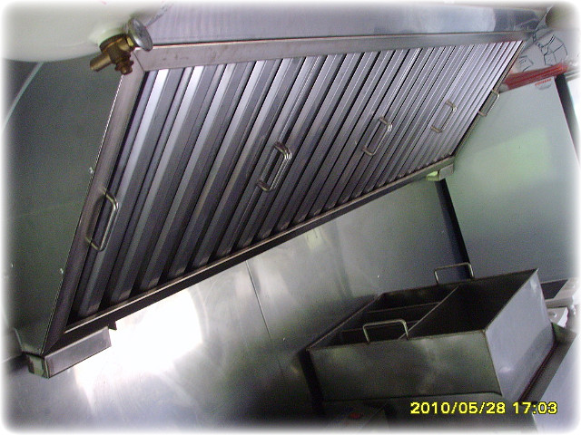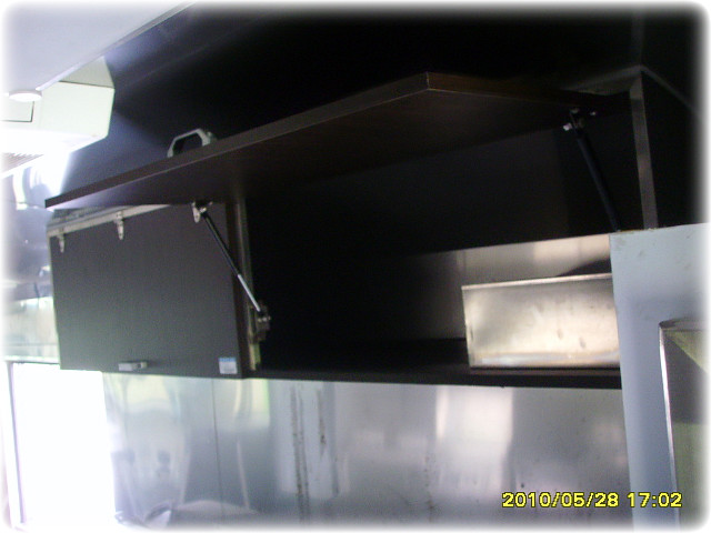 운전석 뒷쪽 주방기기들과 천장에 환풍기가 설치되어있는 모습입니다