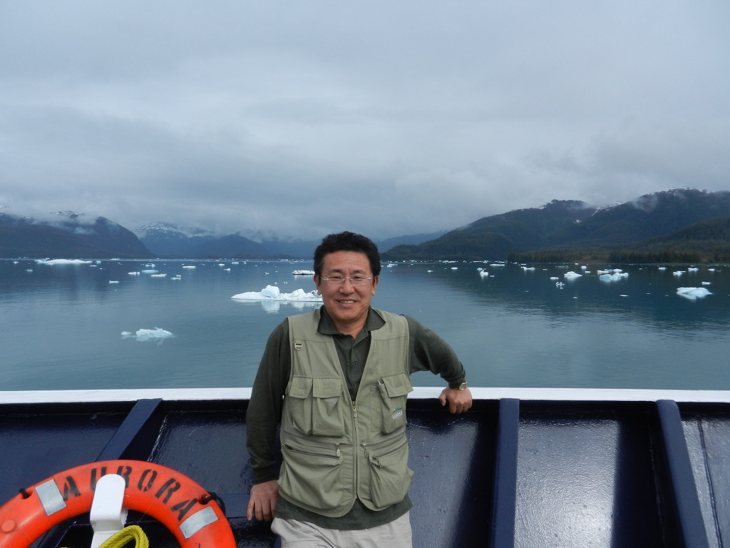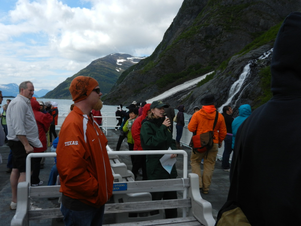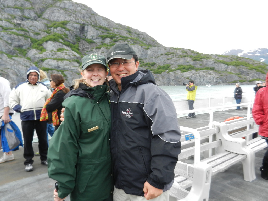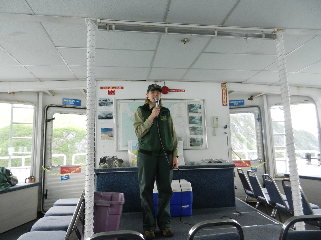 국립공원에서 파견 나온 미녀가 빙하 쿠르즈 안내를 한다.
