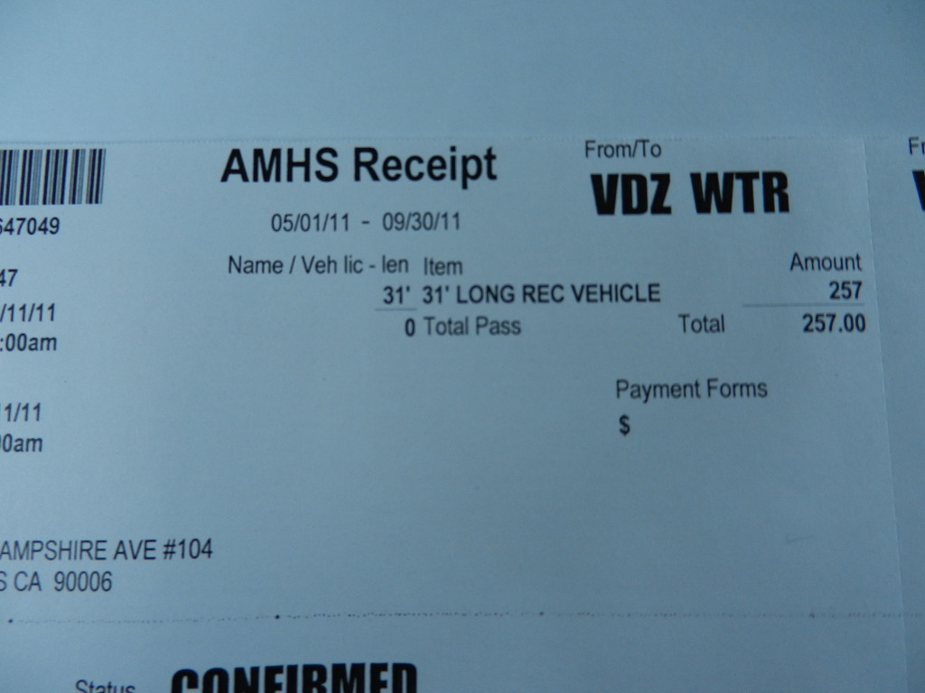 이것은 우리가 지닌 R.V 차량에 대한 운임표 이다.(발데즈-위티어)