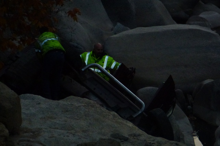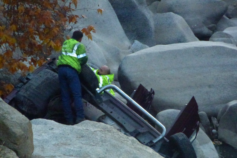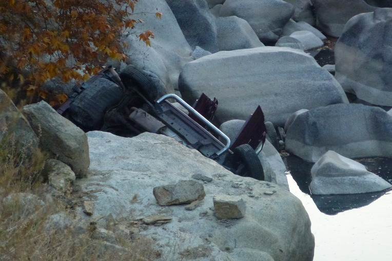 이유는 산 길에서 차가 아래로 굴러 떨어졌기 때문입니다.