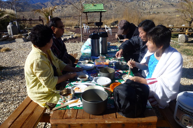 온천에 점심 식사까지 마친 일행들은 무척 행복해 보입니다.