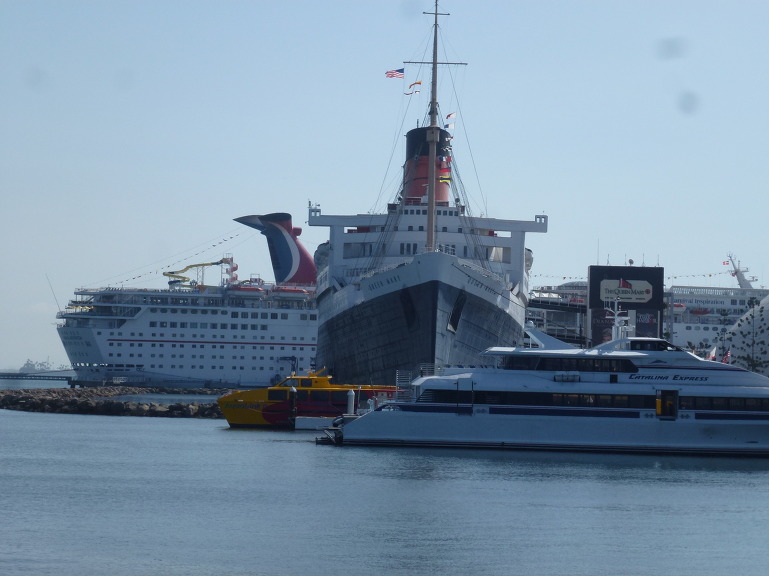 그 앞에 퀸 메리호도 보이고 전방에 날렵하게 생긴배는 카타리나 섬을 왕복하는 쾌속정이다.