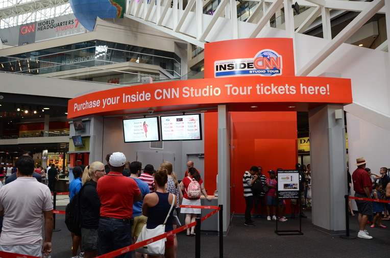 CNN투어를 하려고 가서 줄을서서 기다렸다. 티켓은 이미 코카 콜라에서 구입을 하였기 때문이다.