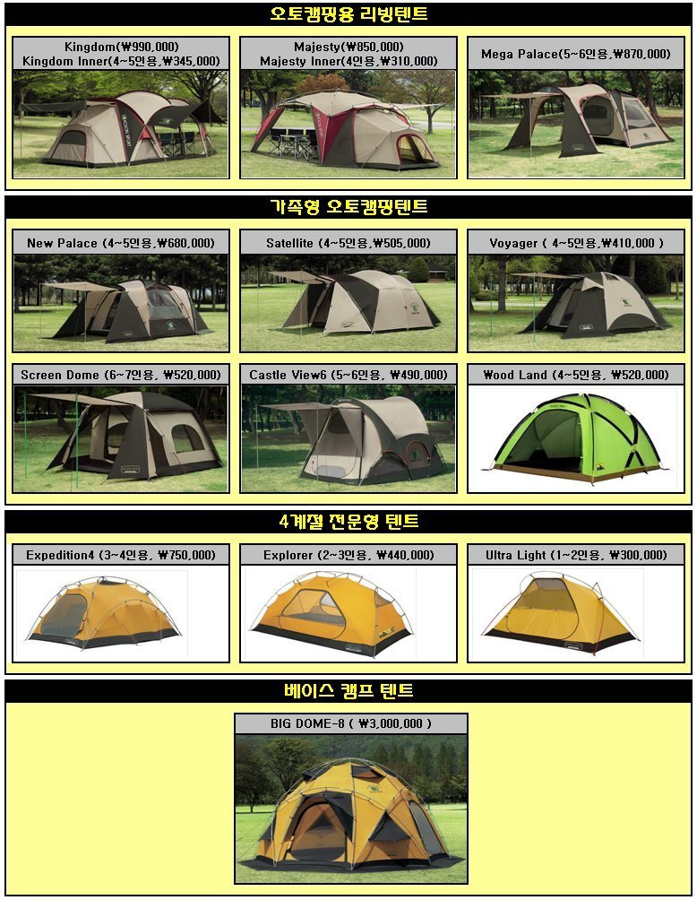 텐트별 자세한 내용은 http://cafe.daum.net/kolon028734550로
