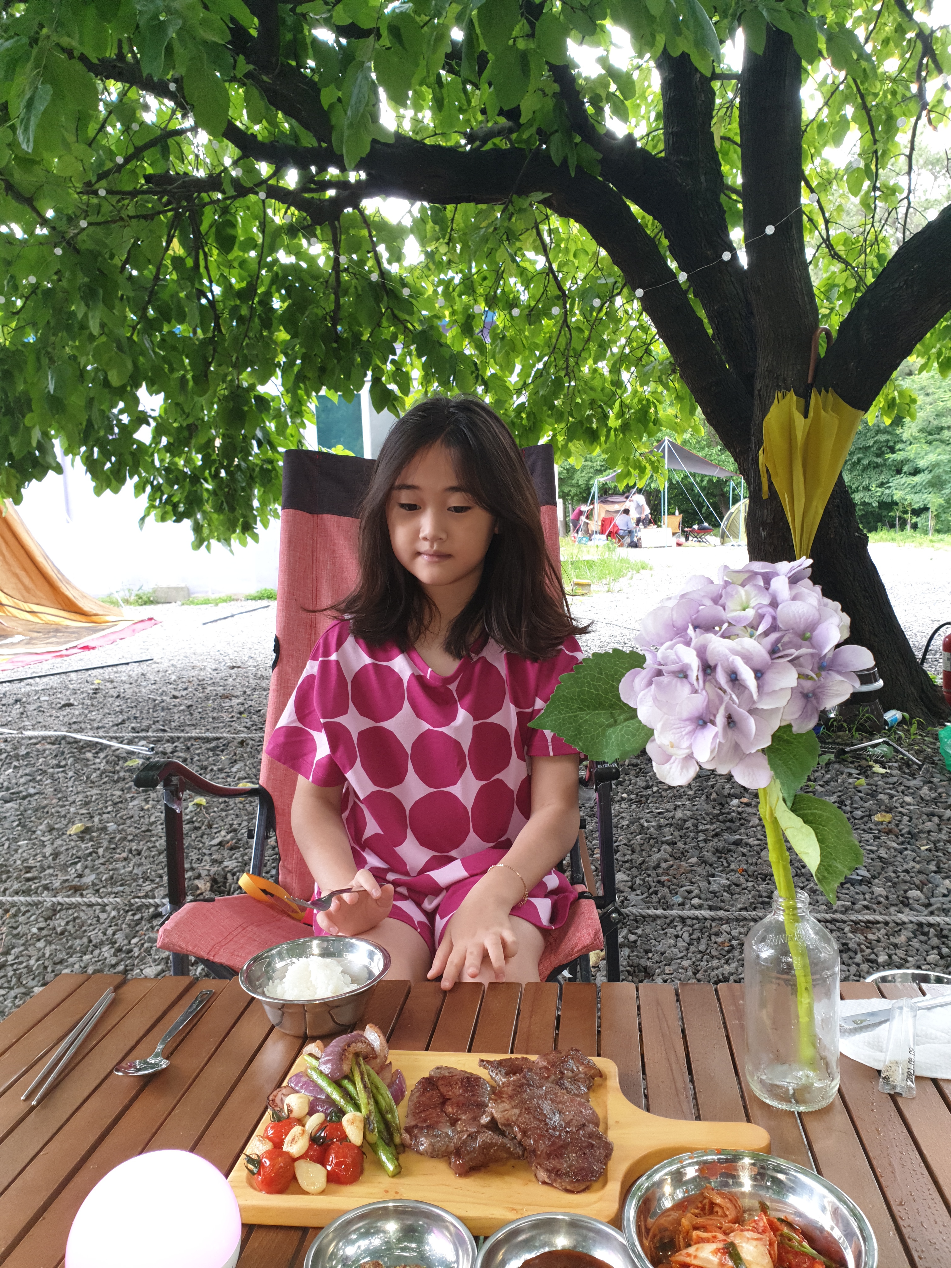 스트링도없다하니 빌려주시고 장작도 여자인내가 들고가는게 무거워보이셧는지 들어다주고 화로대받침대가없어 딸이 대신할만한거찾고댕기니 사장님이 딱맞는걸 가져다주시고~사모님께선 직접따신 산딸기를손수싯어서 애가붙힘성이좋아서 이쁘시다며 직접우리싸이트까지 가지고오셔 딸과 엄청 감동하며 맛있게잘먹었답니다~네잎클러버발견하고 너무너무 좋아하던울딸~여기너무너무좋다며 ^^