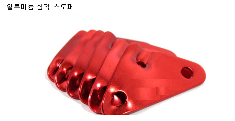 삼각스토퍼 : 삼각형 모양으로 된 스토퍼로 주로 알루미늄으로 만들어져 있다. 홀(구멍)이 3개가 있으며