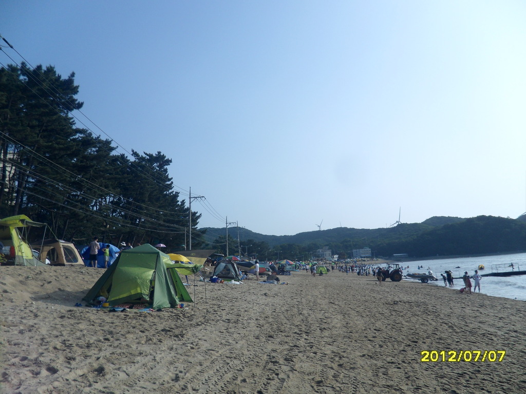 역시 여름의 해수욕장은 조용한 휴식을 원하는 캠퍼들에게는 무리다.