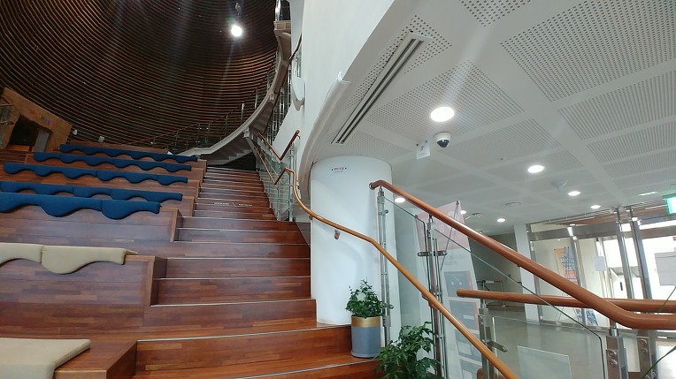 나선형 계단을 통해서 전망대로 올라가 보것 습니다"