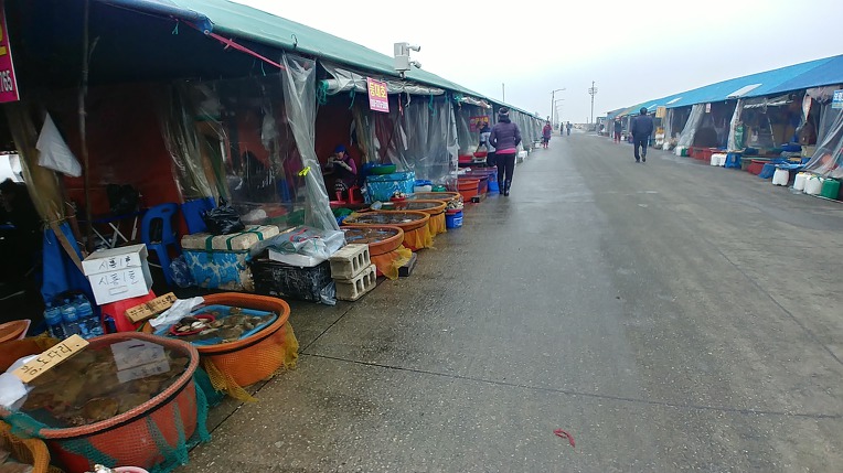가게마다 테이블 2~3개 놓고서리 영업허는디, 직석에서 회를 떠주기때문에