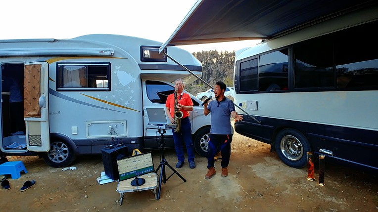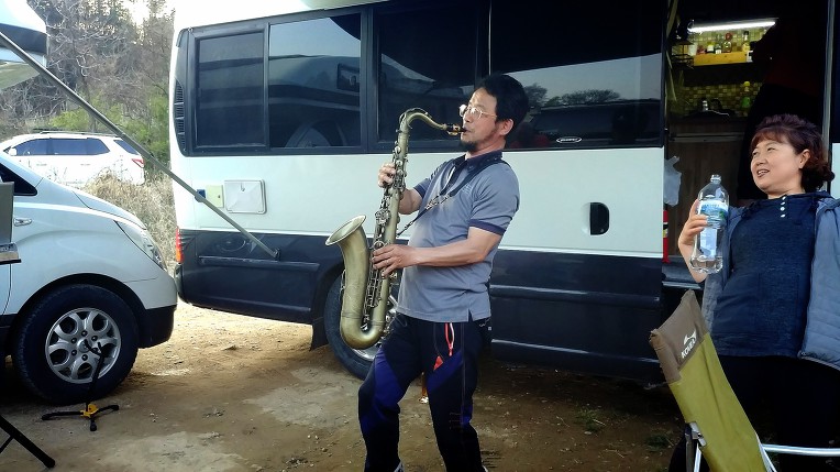 섹스폰 부느라 힘들었징 자~자~ 막걸리 한잔으로 목좀 축이시게나 ---