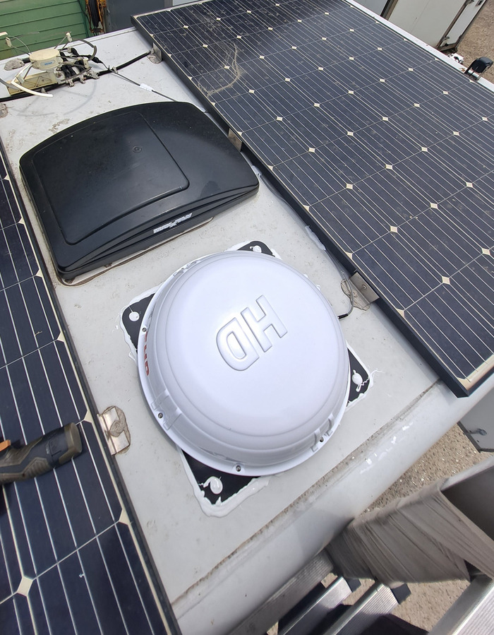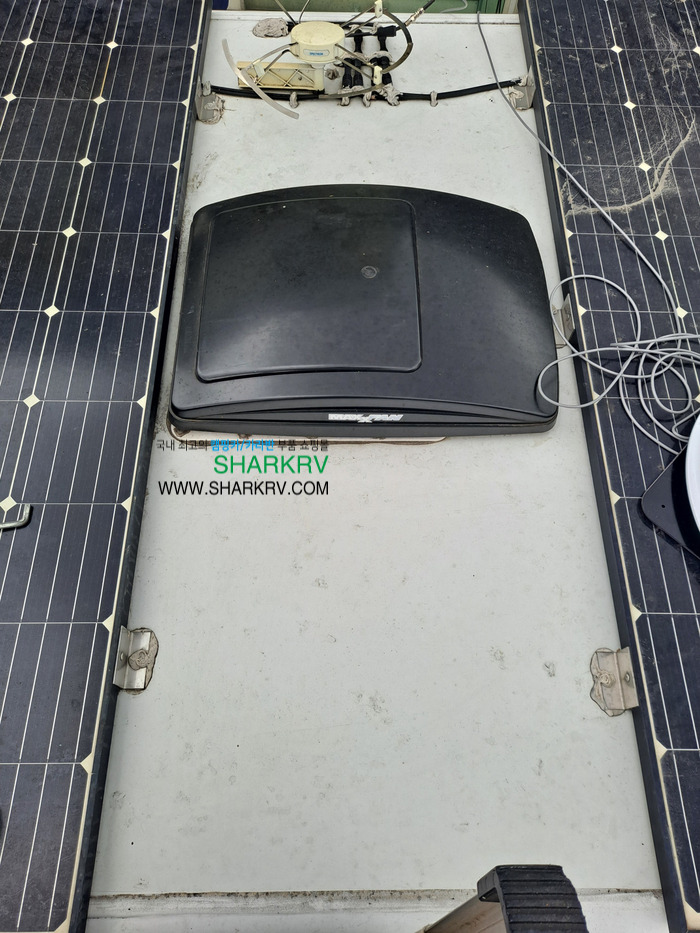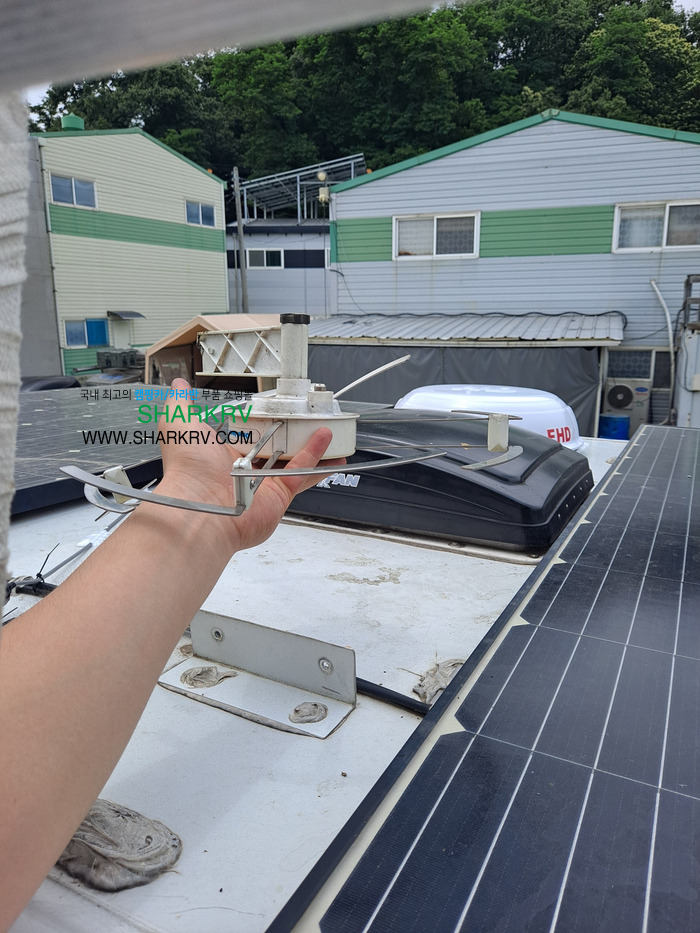 다행히도 지붕이 넓어 태양광 패널의 사이로 딱 들어갈 자리를 비워두셨네요. 환풍기 옆 운전석 라인에 차량용 위성안테나를 고정하고 반대쪽으로 보이는 기존의 안테나는 철거할 예정입니다.