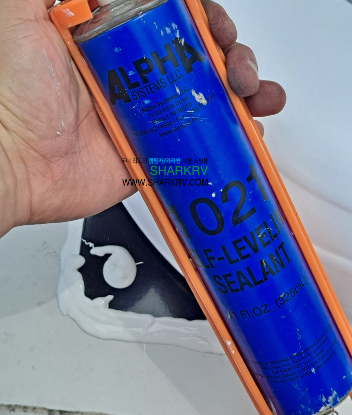 맞습니다 방수작업에 사용이 된 실리콘은 샤크알브이에서 국내에 단독 유통판매하고 있는 미국식 셀프레벨링 실리콘입니다. 현재 국내 캠핑카, 카라반 커뮤니티에서 많은 인기를 끌고 있는 제품인데요!