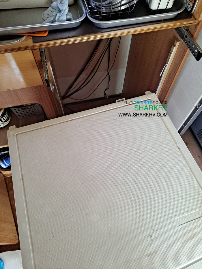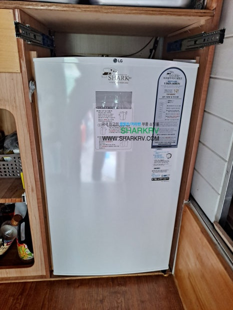 고장난 캠핑카 냉장고 탈거 후 신형 샤크알브이 DC냉장고 90리터 제품으로 교체장착하기 - 캠핑카, 카라반 제작 전문점 샤크알브이