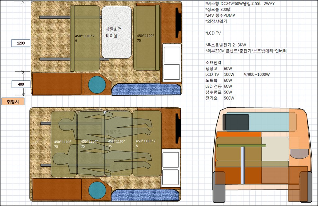 드디어 베이스차량을 결정하고 1차적으로 레이아웃 도면을 만들어봤습니다