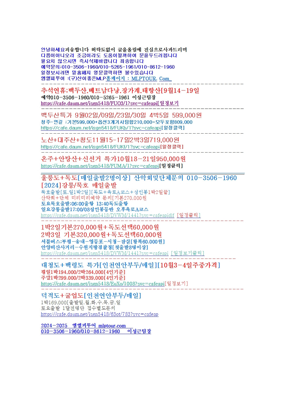 울릉도/백령도/굴업도/11월15-17일 노산대주산확정/베트남달랏/라오스/계림 작성자이성근|작성시간24.08.27|조회수28 목록 댓글 0 글자크기 작게가 글자크기 크게가 다음검색 현재 게시글 추가 기능 열기 북마크 공유하기 신고 센터로 신고 댓글 댓글 0 댓글쓰기 답글쓰기 댓글 리스트