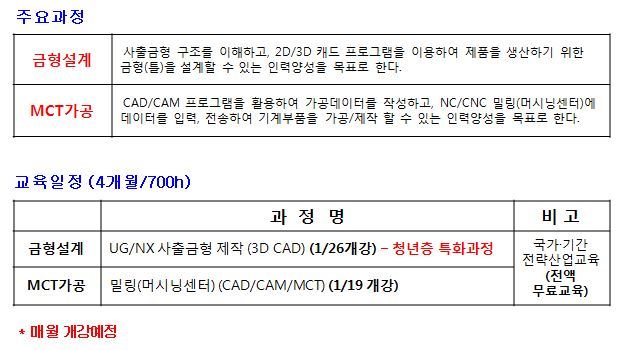 UG/NX 사출금형 제작 - 1/26개강 (청년층 특화과정)
