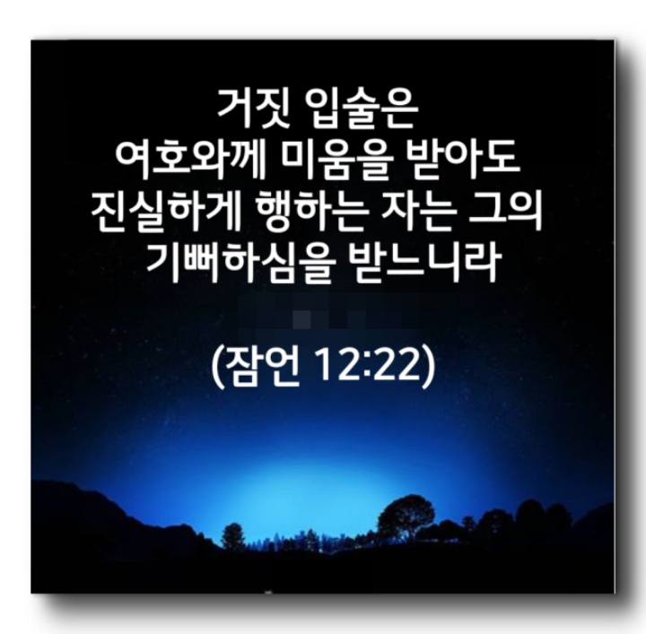 거짓 입술은 여호와께 미움을 받아도 진실하게 행하는 자는 그의 기뻐하심을 받느니라