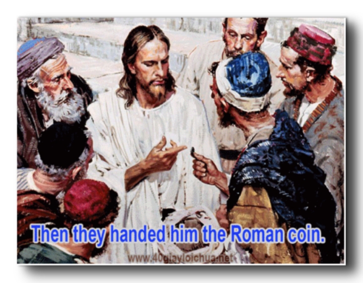 이르되 가이사의 것이니이다 이에 이르시되 그런즉 가이사의 것은 가이사에게, 하나님의 것은 하나님께 바치라 하시니
