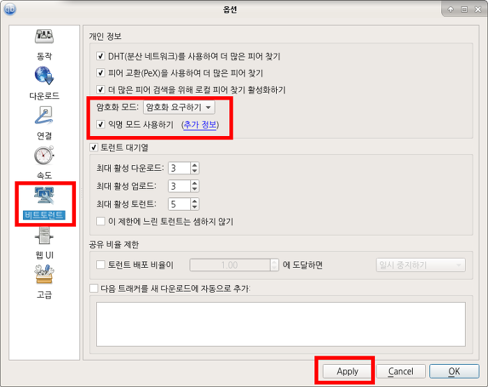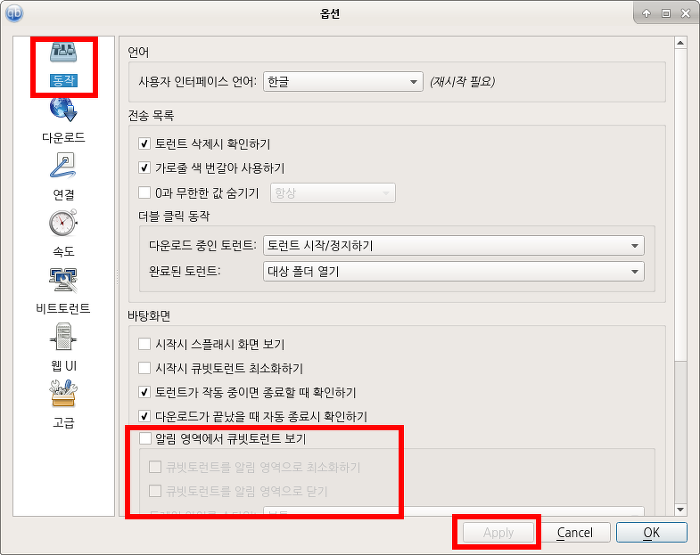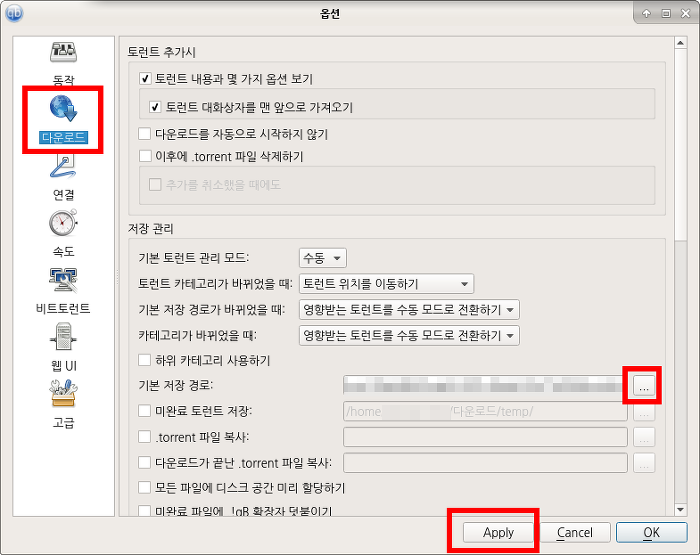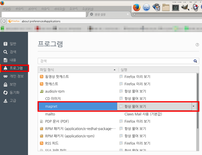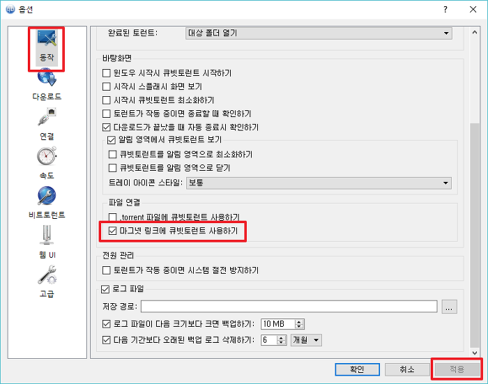 동작> 아래로 바를 내려서 파일 연결> 마그넷 링크에 큐빗토렌 사용하기