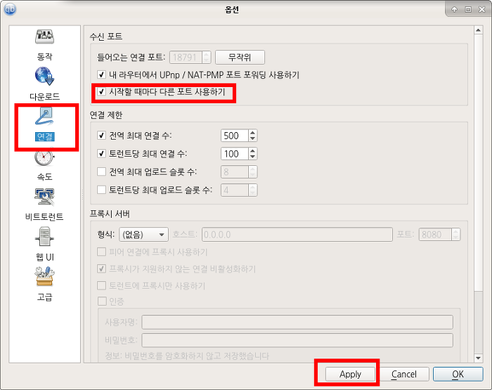 옵션> 연결>전 무작위를 쓰곤 하네요.