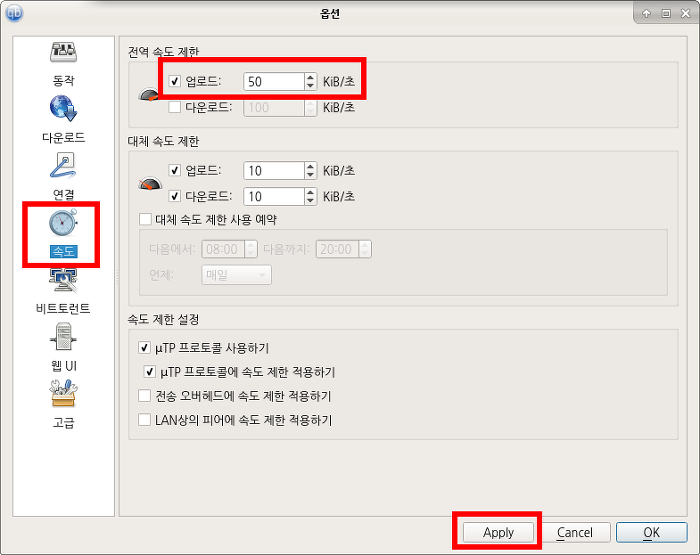 옵션> 속도> 업도�Y 속도 입니다. 전 50 정도로 하는대 너무 높거나 무재한의 경우 하드가 사망 하네요