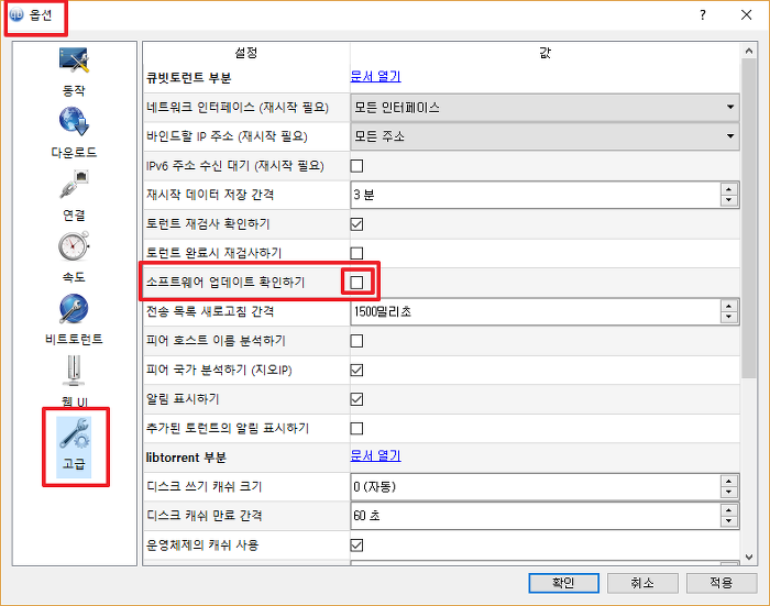 옵션> 고급> 소프트웨어 업데이트 체크.. 숨어 있어서 찾기 어렵군요 ㅋㅋ;;