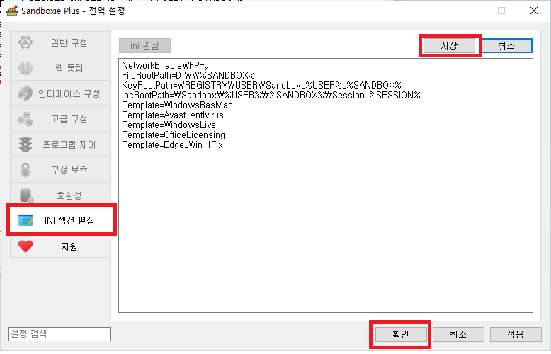 그럼 아래와 같이 [INI 섹션 편집기] 처럼 등록 되게 된다