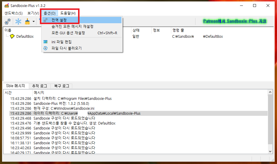 C:\Sandbox\홍길동 사용자\DefaultBox