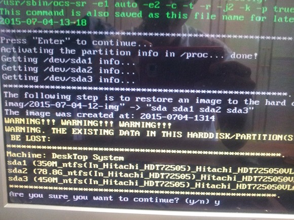 하드웨어로 눌러 하지 말고.. Clonezilla 프로그램을 사용 하여 리부팅 하세요 안 그럼 하드 날라감 ^^;; 재수 없으면요..